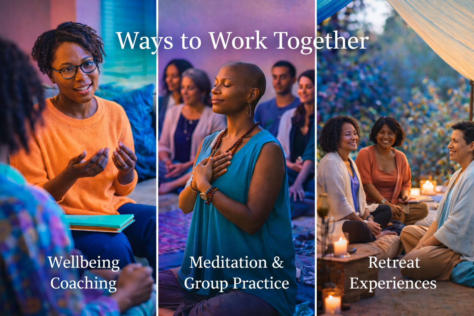 primordial sound meditation, guided reflection, affirmations, and wellness coaching.